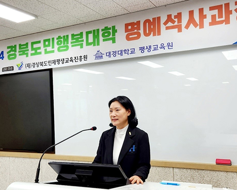 2022년 학사과정(문경시캠퍼스)을 수료하면서 더욱 욕심이 생겼습니다. 그래서 2023년 석사과정(북부권역캠퍼스)에 도전하여 다시 1년간 수업을 들으면서 다양한 경험과 자기계발, 성장에 도움을 받았습니다. 석사과정의 다양한 교육과정에 다시 한 번 보람과 자부심을 느끼며, 경북의 다양한 역사와 융복합, 창조창의혁신, 미래학 또 다른 관심의 영역에 대한 배움의 즐거움으로 행복과 보람을 느꼈습니다.