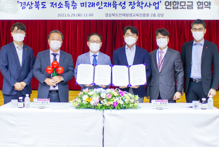 지난 6월 29일 경북인재평생교육진흥원(이사장 이철우)에서는 경북사회복지공동모금회(회장 전우헌)와 양 기관의 관계자들이 참석한 가운데 ‘경상북도 저소득층 미래인재육성 장학사업을 위한 연합모금’ 협약을 체결했다. 이번 협약은 경북 도내 대학생, 청년 등 우수 인재육성과 더불어 저소득층 학생들…